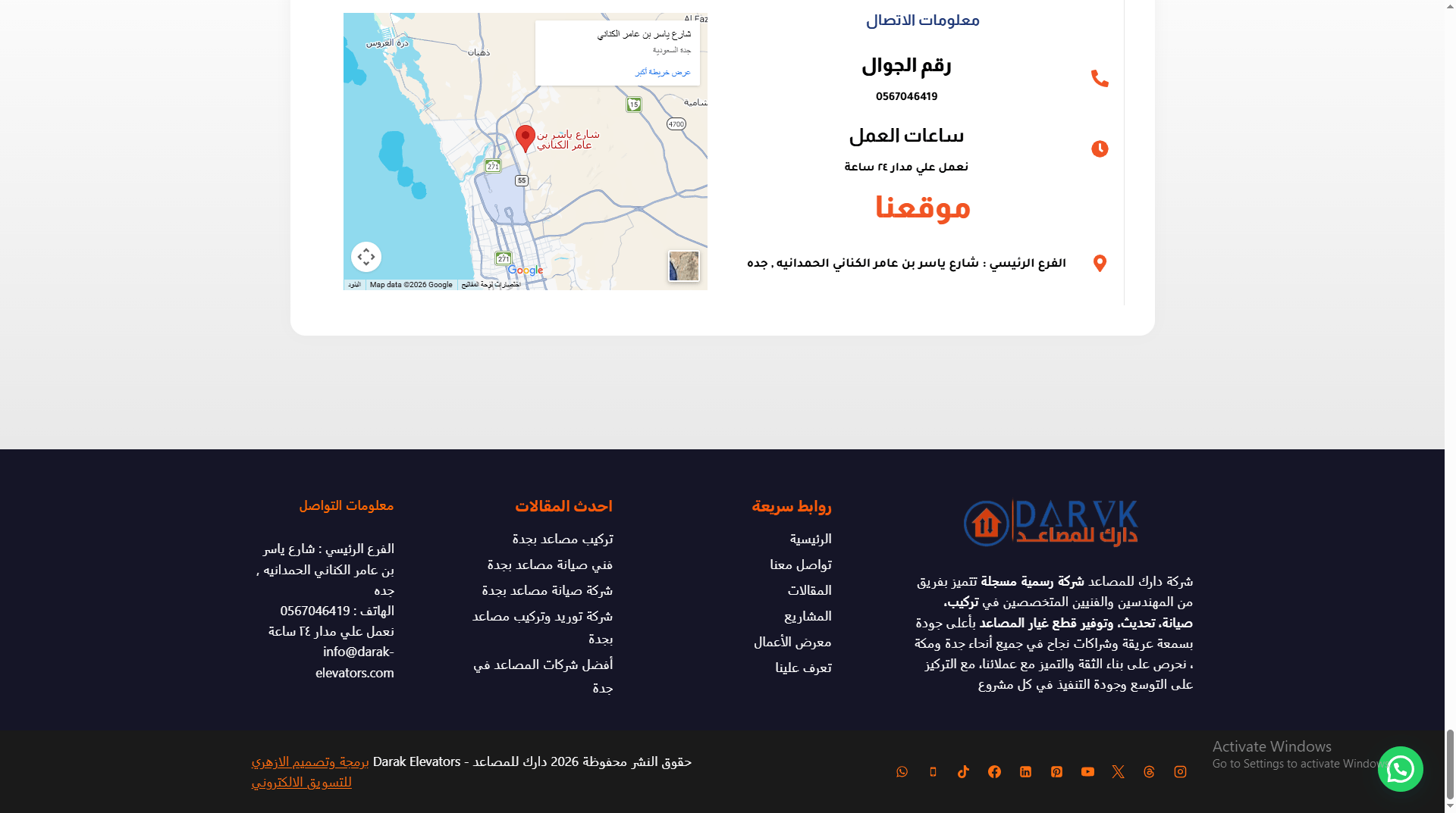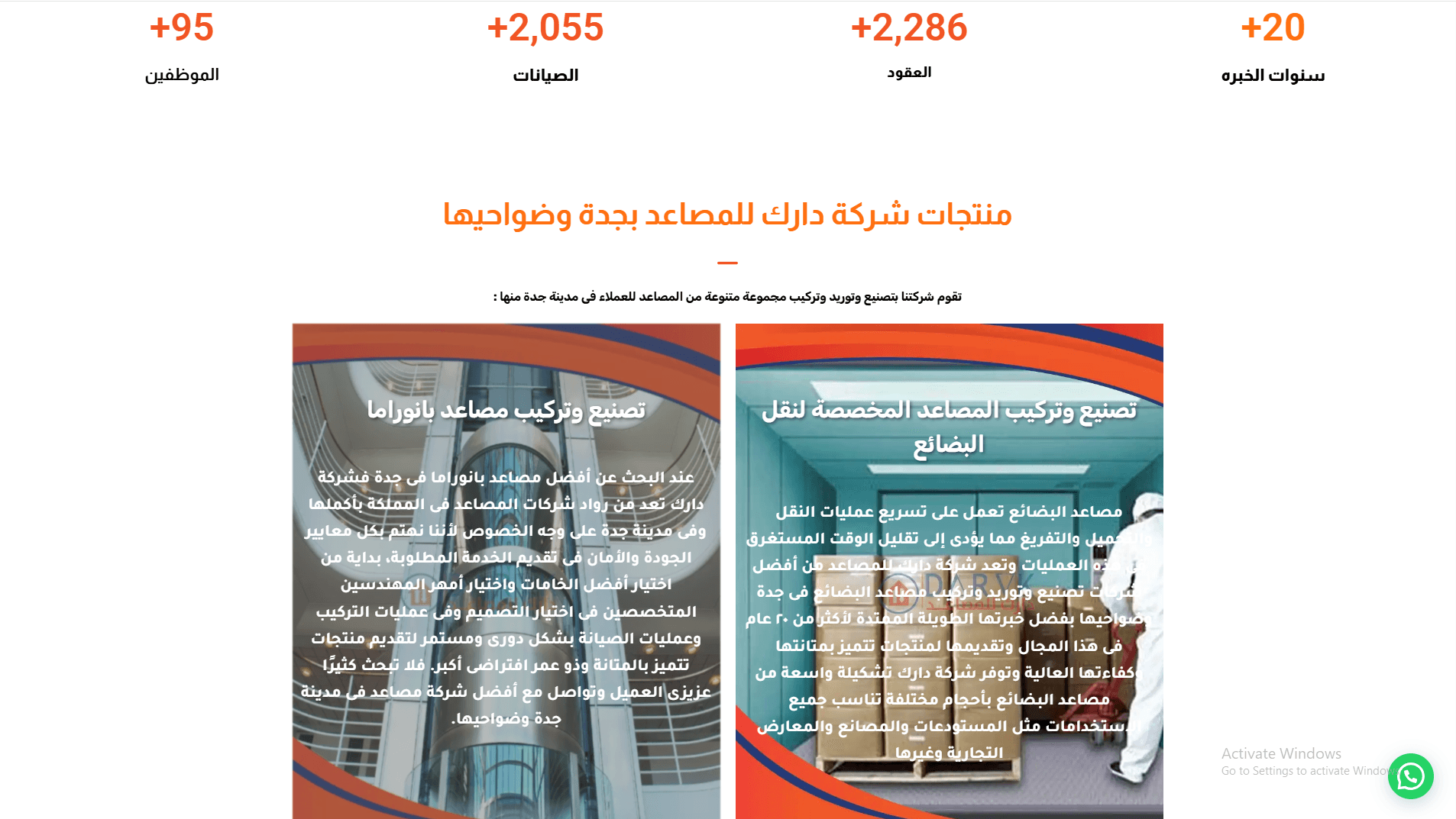 شركة دارك هي الرائدة في مجال توريد وتركيب وصيانة المصاعد في جدة منذ عام 2004، مع خبرة تزيد عن 21 عامًا. تقدم الشركة مجموعة واسعة من الحلول للمصاعد المنزلية، التجارية، الصناعية، والبانورامية، بالإضافة إلى خدمات التجديد والصيانة الوقائية، معتمدة على معايير عالمية (ISO 9001 وEN 81) وماركات أوروبية موثوقة مثل ألمانية وسويدية. تهدف إلى توفير أمان تام وكفاءة عالية للمباني السكنية والتجارية، مع دعم فني متواصل 24/7.