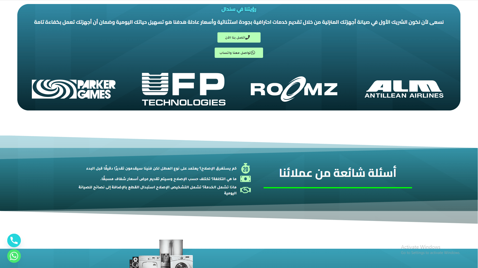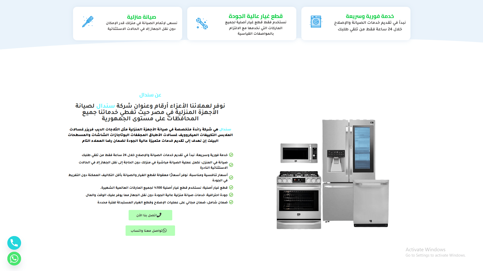 - إبراز الجودة مقابل “الرخيص”: قسم “لماذا سندال؟” يحتوي على نقاط قوة بسيطة ومقارنة غير مباشرة (قطع غيار أصلية 100%، ضمان مجاني، صيانة في المنزل، أسعار معقولة دون تفريط في الجودة)، مع شهادات عملاء تتحدث عن “الفرق الكبير في المتانة بعد الإصلاح”.