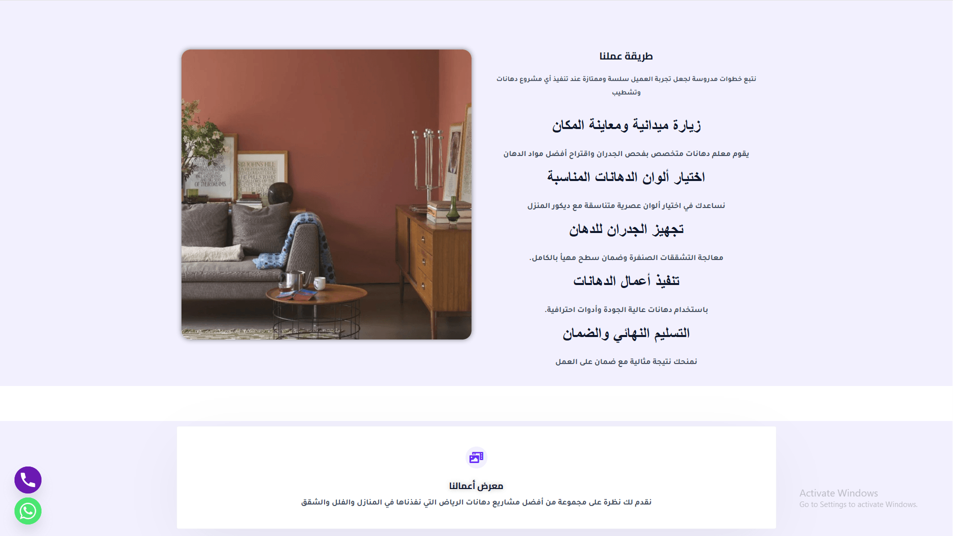 - معرض أعمال مصنف بـ”قبل وبعد” فني: قسم معرض غني بصور عالية الجودة مقسمة حسب النوع (دهان داخلي، خارجي، ديكور إيبوكسي، تعتيق، بديل رخام)، مع شرح قصير لكل مشروع يبرز التحول الفني والتأثير على المساحة.